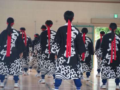 バンテンとはちまきを身に付け、本番どおりの雰囲気で練習しました。いつも以上に気合が入っていることが伝わってきました。