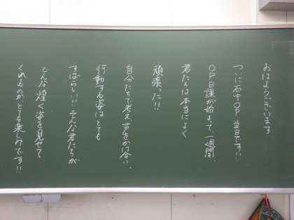 朝の各教室 ——— 担任からの熱いメッセージが黒板に書き込まれていました。