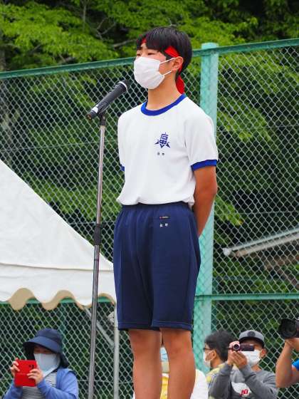 生徒会長からは、久しぶりに開催されることへの喜びと練習の成果を十分に発揮し、楽しく安全に競技に向かおうという意気込みが発表されました。