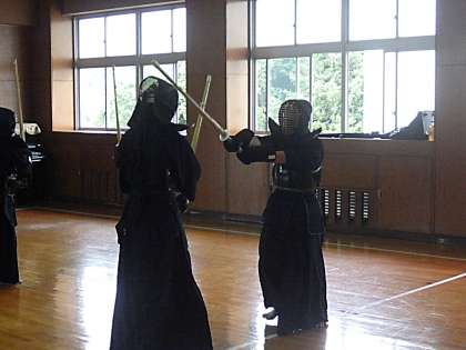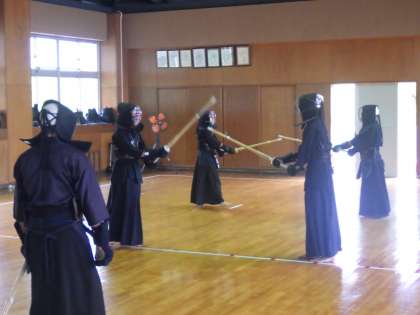 外部指導者の方の熱心な指導に、3名の部員も必死に稽古に励んでいます。また、顧問の先生も防具を着け、部員と同じメニューをすべてこなしていきます。