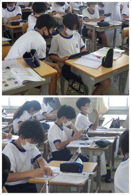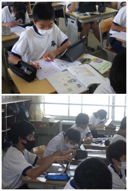 植物の分類について学んでいました。屋外の観察やタブレットで探し当てた植物を、分類表をもとに分類していきます。途中、分類の難しい植物も出てきましたが、意見を出し合ったり、教科担任の説明を聞いたりして、正しく分類していました。