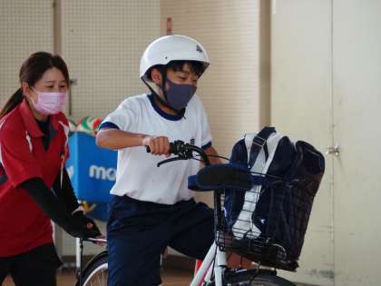 午後に行われた1年生の自転車講習会の様子です。