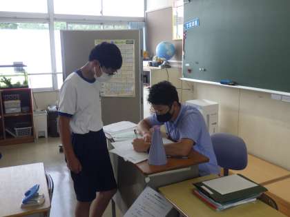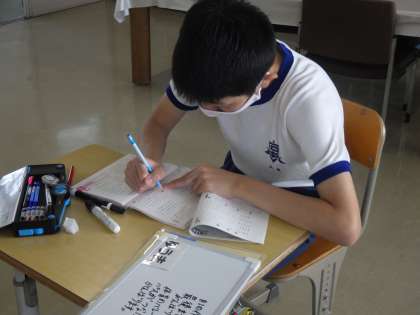 担任が学習の様子について、一人一人確認しています。このタイミングで、テストに向けて不安に思っていることや心配なことも相談していきます。