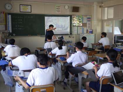 5/25 仲間との意見交換を交えながら… 1 公開日 2022/05/26 更新日 2022/05/26 各学年から 2年生の社会の授業の様子です。 日本に伝わった宗教の学習を行っていました。古い時代までさかのぼり、中世ヨーロッパとイスラム世界、キリスト教世界とその外の世界など、これまでの日本の歴史に影響を与えた宗教を確認し、歴史がどう変わっていたのかを学んでいました。