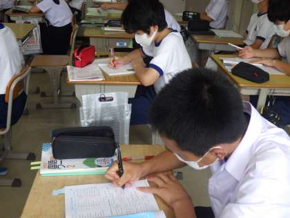 日頃はにぎやかな2年生ですが、テスト週間中の朝は時間を有効に活用し、集中して学習に向かっています。