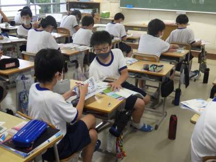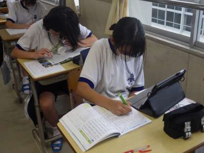 途中、仲間と確認し合ったりする場面も見られ、学校での勉強の仕方、家庭での勉強の仕方も学んでいるようでした。
