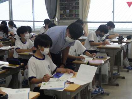 前期中間テストを来週に控え、まずは重要漢字のおさらいが行われ、その後、国語のテスト勉強仕方がレクチャーされていました。漢字の練習の仕方、問いに対しての答え方など、ポイントを押さえての勉強法が伝授されていました。