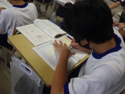 途中、仲間と確認し合ったりする場面も見られ、学校での勉強の仕方、家庭での勉強の仕方も学んでいるようでした。