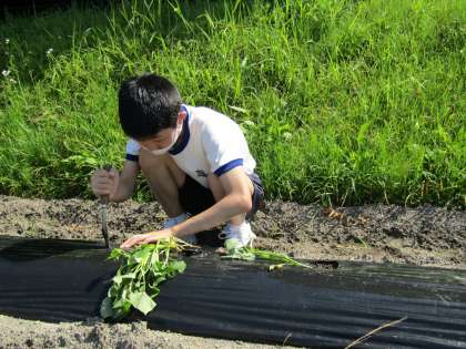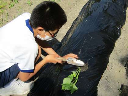 今日は、学級菜園でのサツマイモの苗を植えたり、梅の収穫を行ったりしていました。自分たちの活動がたくさんの人を喜ばせることになると考えると、一生懸命活動に取り組んでいました。暑さの中でもしっかりと作業を行っている様子に感心しました。