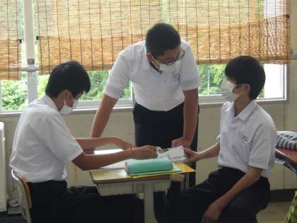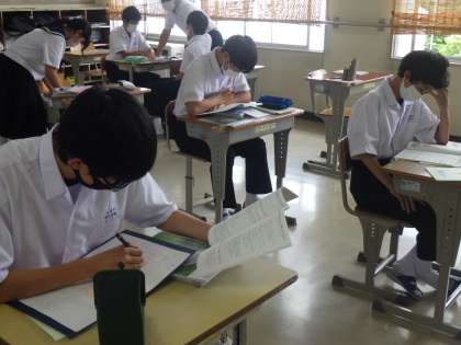 初日のテストが終わりましたが、翌日のテストに向けての勉強が始まっていました。写真は3年生の様子です。
