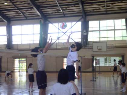 6/2 特別ルールで全員が活躍 1 公開日 2022/06/03 更新日 2022/06/03 各学年から 2年生の体育の授業の様子です。 バレーボールの学習が行われていました。3〜4人のチームに分かれ多くのチームを対戦を繰り返していきます。男女混合のチームで、ソフトミニバレーボールのコートでのゲームです。特別なルール—を設定し、全員がバレーボールの楽しさを味わうことができるよう、工夫がされていました。