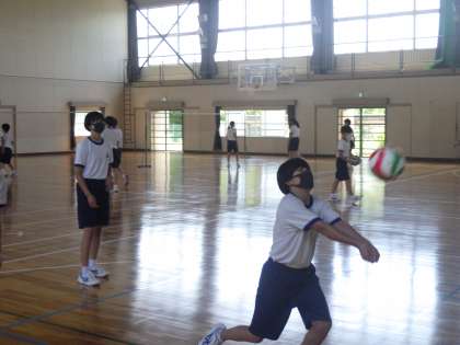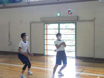 6/2 特別ルールで全員が活躍 2 公開日 2022/06/03 更新日 2022/06/03 各学年から 2年生の体育の授業の様子です。 バレーボールの学習が行われていました。3〜4人のチームに分かれ多くのチームを対戦を繰り返していきます。男女混合のチームで、ソフトミニバレーボールのコートでのゲームです。特別なルール—を設定し、全員がバレーボールの楽しさを味わうことができるよう、工夫がされていました。