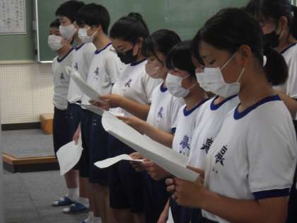 3年生を中心とする登録メンバーの士気を高めるため、大きな声を出し、エールの練習をしていました。
