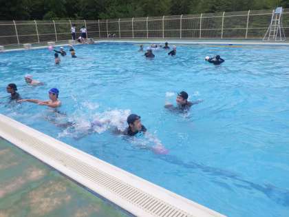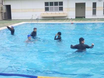 3年ぶりとなる水泳の学習が始まりました。中学校のプールに初めて入り、やる気も満々。今日は水に慣れる活動が多く行われていました。