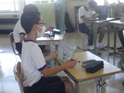 タブレットやホワイトボードを使って、様々な事柄の説明をしていきます。