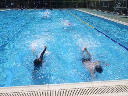 ポイントを意識しながら何往復も泳ぐ生徒、水泳の得意な仲間から丁寧にポイントを教えてもらう生徒など様々ですが、誰もが積極的に活動していて感心しました。