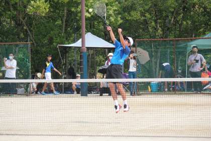 男子ソフトテニス部の夏の大会(豊田・みよし地区総合体育大会)の様子です。