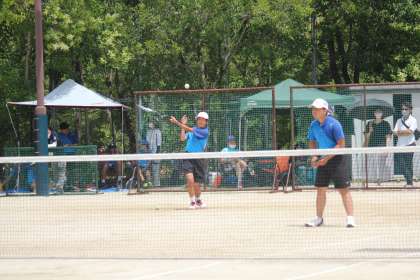 男子ソフトテニス部の夏の大会(豊田・みよし地区総合体育大会)の様子です。