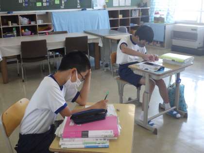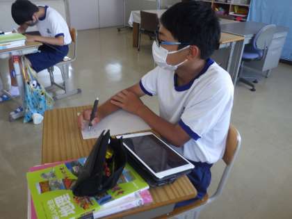 「国会における2つの話し合う議会について知ろう」をテーマに、タブレットを用いての調べ学習です。衆議院と参議院など耳にしたことがある言葉を探し当て、それらについてさらに細かく調べていました。