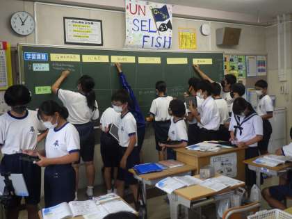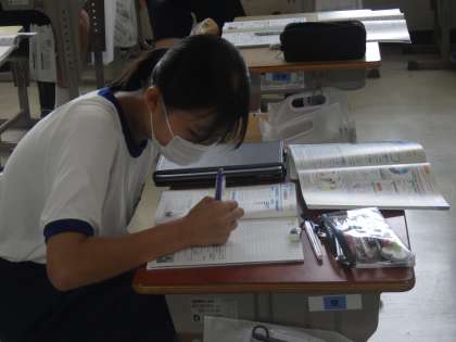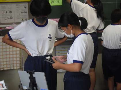 保健分野で「生活習慣病の予防」について学習が進められていました。グループに分かれいろいろな生活習慣病について説明していきます。