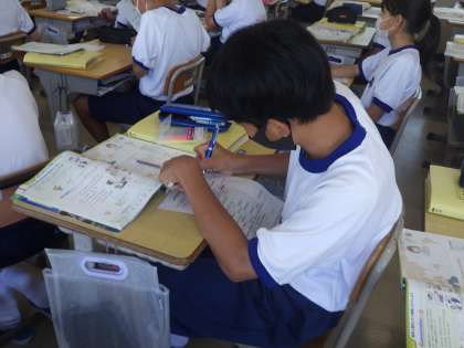 命令文について学んでいました。動詞から文を始める新しいパターンです。「宿題しなさい」などの言い回しは一般動詞から始まり、「静かにしなさい」などの言い回しはbe動詞から始まるなど、英文での表し方を学習していました。