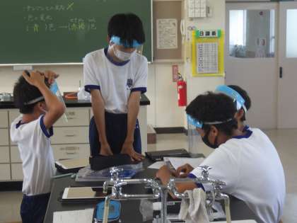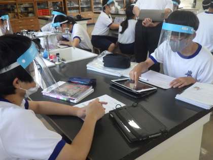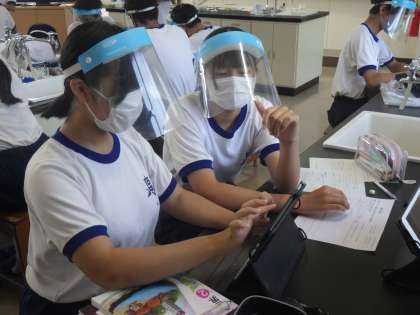 「動物の体のつくりとはたらき」の単元で、唾液がでんぷんにどう働くかを調べるための実験計画を立てる授業でした。自分の考えた実験計画を仲間と共有し合い、タブレットを活用してその考えを全体に広めていました。