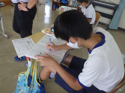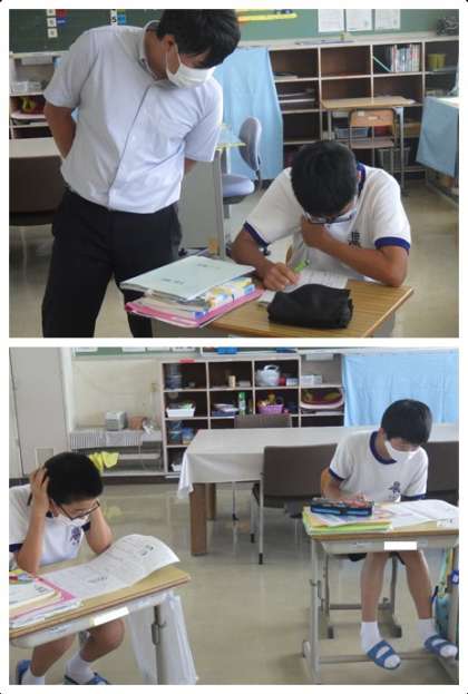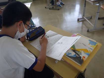 文章の読解についての問題に取り組んでいました。頭を抱えながら、一生懸命考えています。
