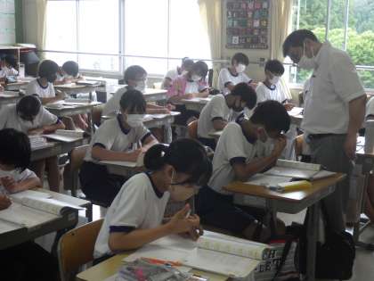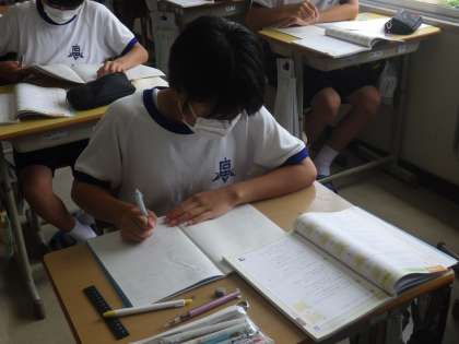 連立方程式の代入法での解き方について学んでいました。時々教科書に出てくる少し捻った問題も、教科担任の「これができたらスゴイ!」のひとことに、あきらめることなく挑戦していました。
