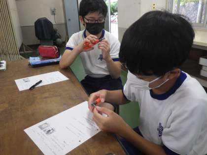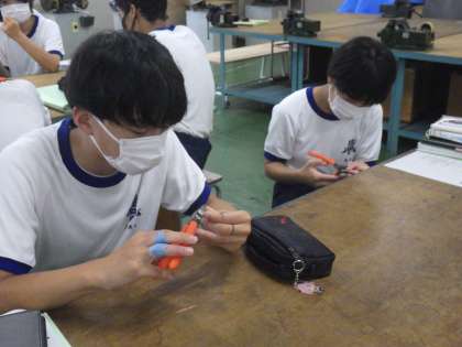 ドライバーとニッパーの使い方について学んでいました。配線を切らないように表面のビニールだけを取り除く作業です。力の加減を考えて、慎重に作業に取り組んでいました。