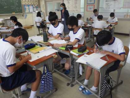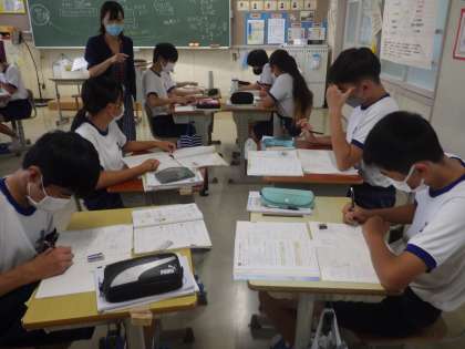2日後に行われる学習診断テストに向けての勉強会が行われていました。グループになり、苦手な問題に挑戦しながら、息詰まったらすぐに確認です。