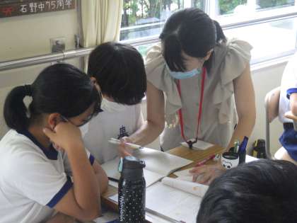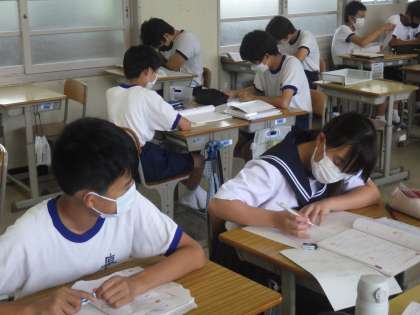 連立方程式の難しい問題に挑戦していました。まずは自分で考え、行き詰ったら相談。周りには頼りになる仲間、教科担任や学生ボランティアもいます。頑張りの様子をスクールカウンセラーさんも見守ってくれています。