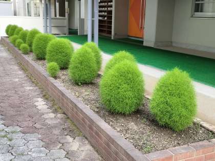 3年前に3つほどの苗を購入し、花壇に植えたコキア。翌年から自生したものを多くの場所に植え始め、今ではあちこちの花壇で立派に育っています。特に今年は植え方を工夫し、間隔を広めにとりました。おかげで確実に成長を続けています。