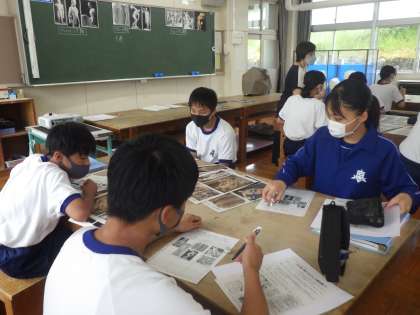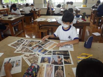 「ギリシャ彫刻の美しさを比べる」をテーマに、鑑賞の学習が行われていました。社会科で学習したこともふまえ、時代背景を想像しながら作品の特徴や美しさを感じていました。