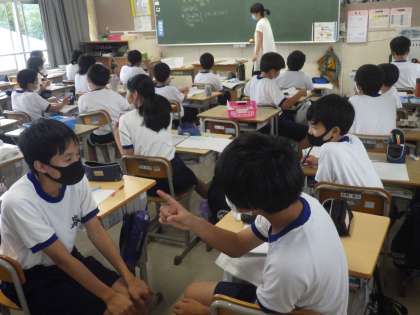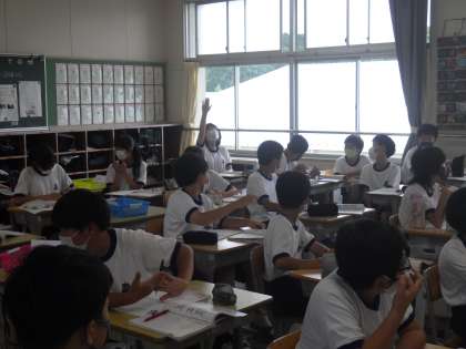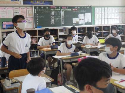 文字式の加法・減法を使った計算の仕方を学んでいました。教科担任の「初めて勉強することやから、間違っていても問題なし」のひとことに、がぜんやる気を出した生徒たち。自分の考えた解き方を積極的に発表していました。