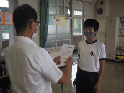 コロナの感染急拡大に伴い、元気に登校することが大変な時期ではありますが、元気に登校し続けた生徒たちに感心しました。と同時に、家族の協力もあることに感謝です。