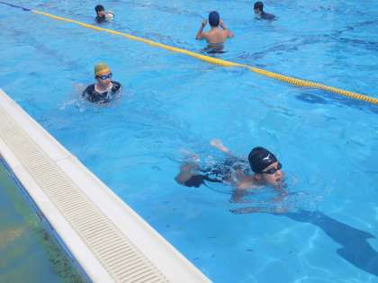 久しぶりの晴天のもと、今年度最後の授業が行われていました。クロールをマスターすることを目的に学習が進められていましたが、次年度以降のことも考え、平泳ぎやバタフライの練習を始めている生徒もいました。