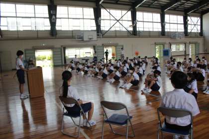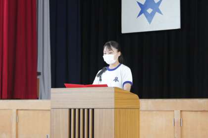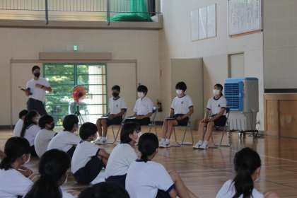 これまでの反省と夏休みの目標をしっかり述べた4名の生徒の話を受け、校長先生からは、「やらなかった後悔をしない夏休み」をテーマに、「9月1日に仲間にちょっと自慢できる自分、ちょっと自信がついた自分の姿を見せよう」と話がありました。
