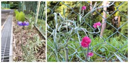 先日、紫色の花を咲かせたヤグルマソウ(矢車草)。しかし、今日改めて見てみると、同じ場所であるはずなのに違う色の花が咲いていました。(隣の苗かも知れませんが…)