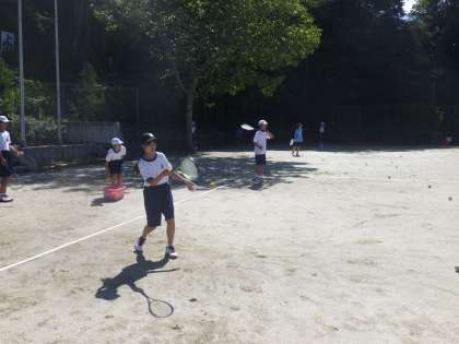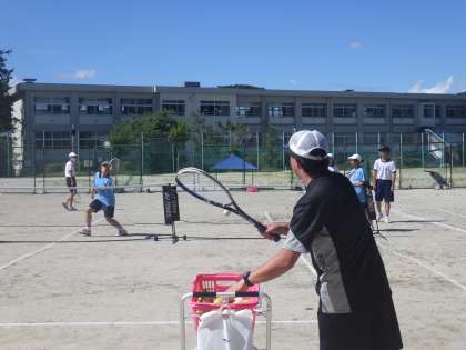 夏の澄み渡る青空の下、新チームでの練習が行われていました。1年生もコート内での練習が増え、生き生きとしている感じがします。また、2年生もよく声を出し、後輩へのアドバイスも忘れずに、自身の練習に取り組んでいて頼もしさを感じました。