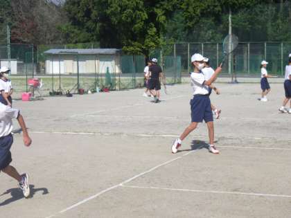 朝から厳しい日差しの中、1・2年生の男女がそろって元気に活動していました。新チームでの活動はまだまだ始まったばかりですが、基礎メニューも次第に増え、お互いが声をかけ合って活動しています。中でも、2年生の声がよく出ており、部活動内での最高学年の意識も出始めているように感じました。