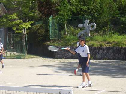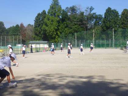 朝から厳しい日差しの中、1・2年生の男女がそろって元気に活動していました。新チームでの活動はまだまだ始まったばかりですが、基礎メニューも次第に増え、お互いが声をかけ合って活動しています。中でも、2年生の声がよく出ており、部活動内での最高学年の意識も出始めているように感じました。