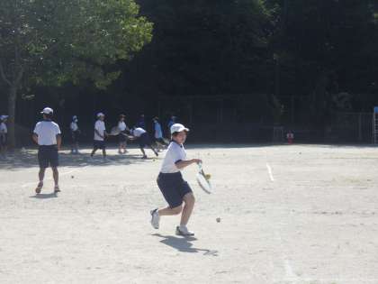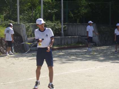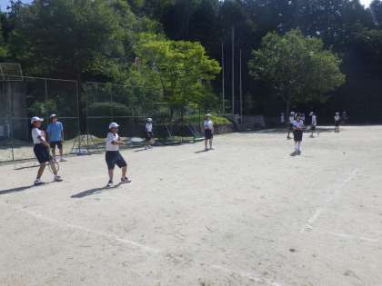 今日も朝から厳しい暑さの中、練習が始まりました。新しいメニューにも徐々に慣れてきた部員たち。途中の細かい練習の説明の時間も少なくなったため、短時間でローテーションを繰り返しながら、効率よく練習が進んでいました。