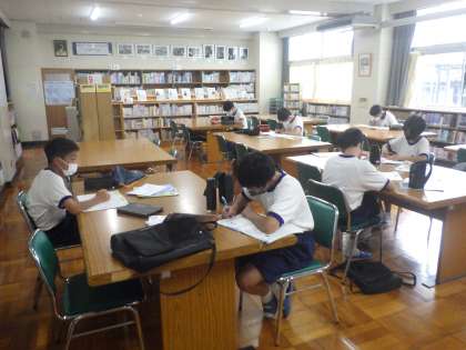 夏休みの課題や9月に行われる前期期末テストに向けて、学習に真剣に取り組んでいます。周りにはいつでも困ったことを確認できる仲間や先生が控えています。安心して、また仲間の頑張りに刺激されて学習に取り組むことで、家庭での学習よりもはかどっているようです。