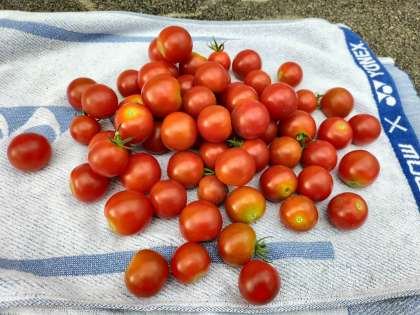 プール横の菜園で育つ夏野菜。中でも今年はトマトが豊作です。また、味もバツグンとのこと。