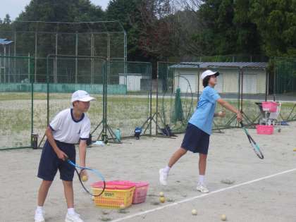 8/16 夏休みの部活動 2 公開日 2022/08/16 更新日 2022/08/16 特別活動 お盆休みが明け、最初の部活動となったソフトテニス部の様子です。 テニスコートには、生徒たちの活気ある姿が戻りました。蒸し暑さで途中で気持ちが切れてしまうような生徒もおらず、元気な声が飛び交っていました。 久しぶりの活動のため、調子がいい生徒とそうでない生徒の両方が存在します。調子のよい生徒はこのまま好調をキープし、そうでない生徒は体力と感覚が早く戻るよう、調整をしてもらいたいと思います。