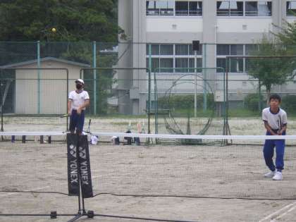 朝の雨によりコートコンデションが悪かったため、初めは体育館で練習を行っていました。次第に青空になり、生徒たちの「外で思いっきり練習したい!」の声もあり、途中からテニスコートでの練習に切り替えました。少し状態が悪かったものの、ゲームの感覚や審判の仕方を思い出しながら、練習を行っていました。