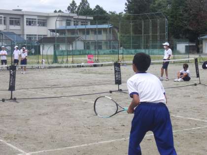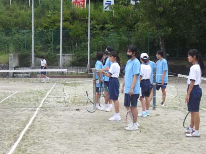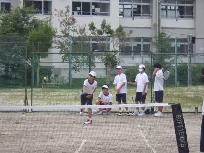 8/17 夏休みの部活動 3 公開日 2022/08/19 更新日 2022/08/19 特別活動 お盆明け2日目のソフトテニス部の活動の様子です。 朝の雨によりコートコンデションが悪かったため、初めは体育館で練習を行っていました。次第に青空になり、生徒たちの「外で思いっきり練習したい!」の声もあり、途中からテニスコートでの練習に切り替えました。少し状態が悪かったものの、ゲームの感覚や審判の仕方を思い出しながら、練習を行っていました。 生徒たちのやる気が前面に出た活動となりました。