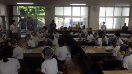 「生徒の防災意識を高め、災害時に主体的に活動できる力を育てること」「生徒、職員、地域住民と共働して防災について学ぶことで、地域の防災力の向上を図ること」を目的に取り組みました。