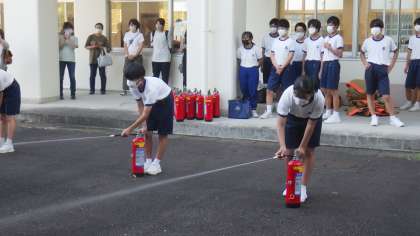 「生徒の防災意識を高め、災害時に主体的に活動できる力を育てること」「生徒、職員、地域住民と共働して防災について学ぶことで、地域の防災力の向上を図ること」を目的に取り組みました。