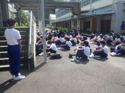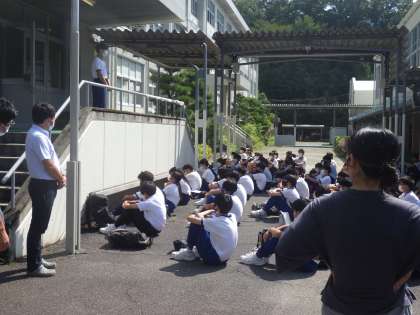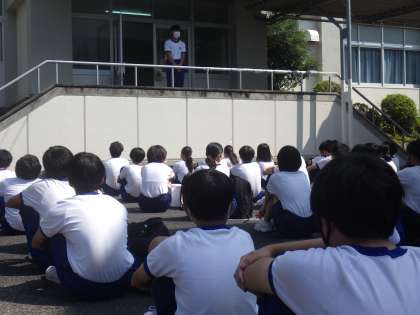 各学年での活動をそれぞれ終えた一斉下校の様子です。課題を提出し、スッキリした気分での下校の感じですが、暑さと決められたメニューに久しぶりに取り組んだ後でもあったため、少し疲れを見せる生徒もいたようでした。